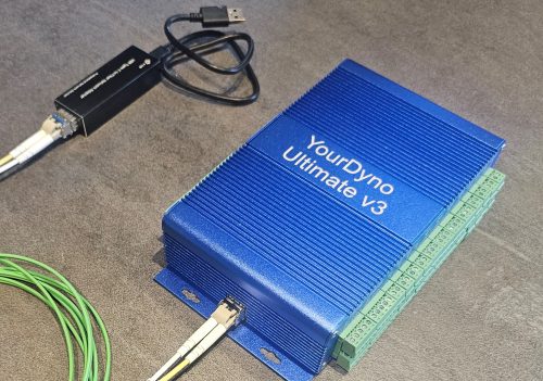 Comes with Weather station and 10m (30ft) fiber optic cable to the YourDyno unit for unbeatable EMI resilience. Includes a fiber to USB converter on the PC side.